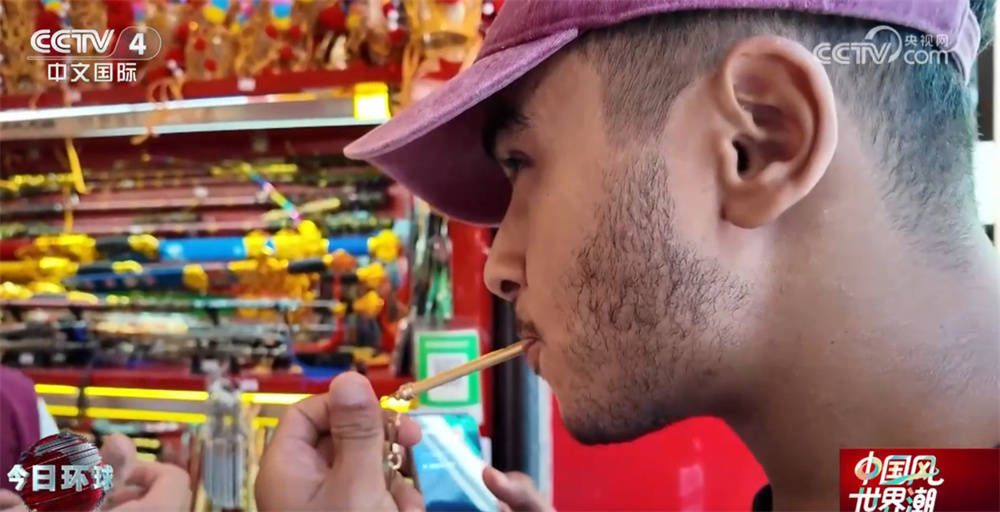 r小摊老板称:“这叫口技,中国的传统文化,民间手工艺做的,叫口技,口技演员就这么来的,民间艺术。你试一下,吹一吹。”