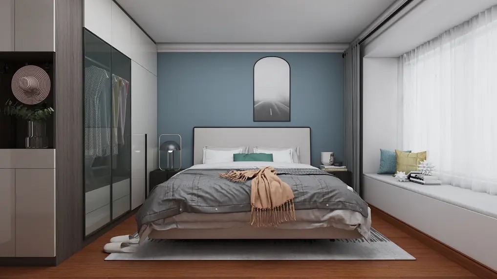 主卧主卧是休息的空间,选择让人安静的蓝色可以帮助睡眠,让空间更加惬意。