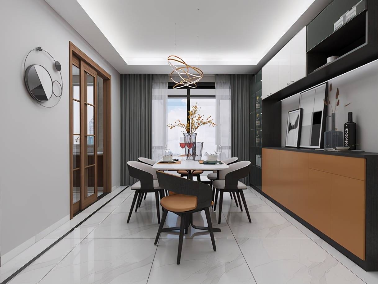 理石质感的餐桌跟客厅茶几相呼应财富家,品质十足;既舒适又优雅的餐椅,增加了餐厅的现代时尚感。